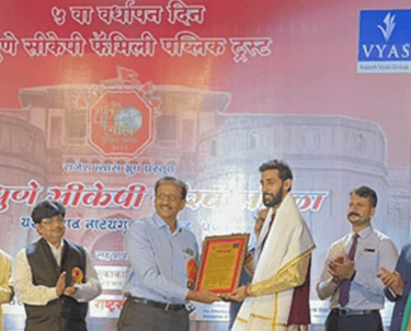 Arnav Fadnavis, Founder of infinite-VARIABLE, received the 6th Pune CKP Youth Award for his leadership in the social, entertainment and business domains.