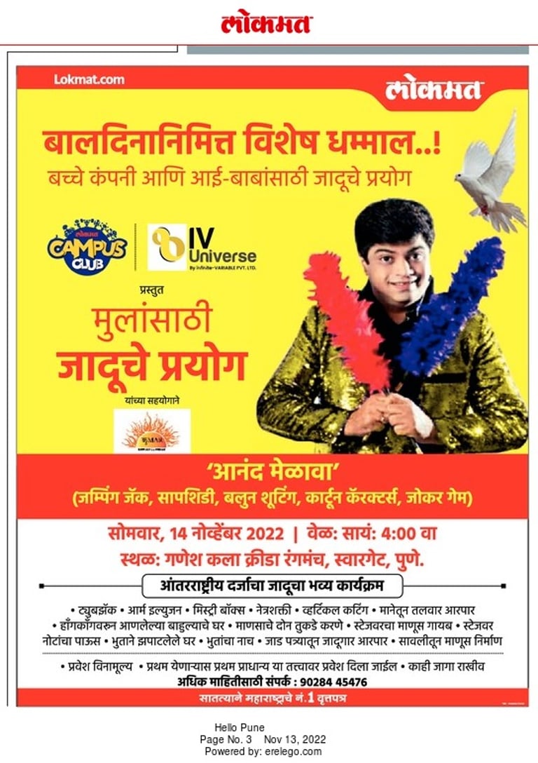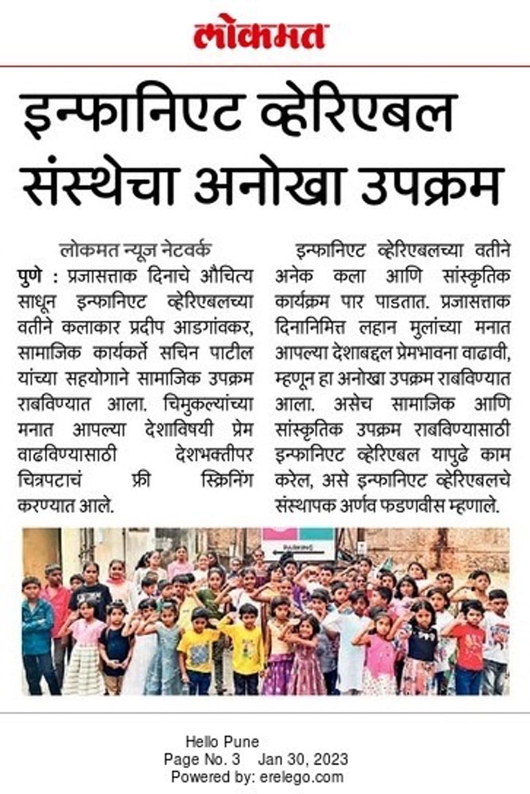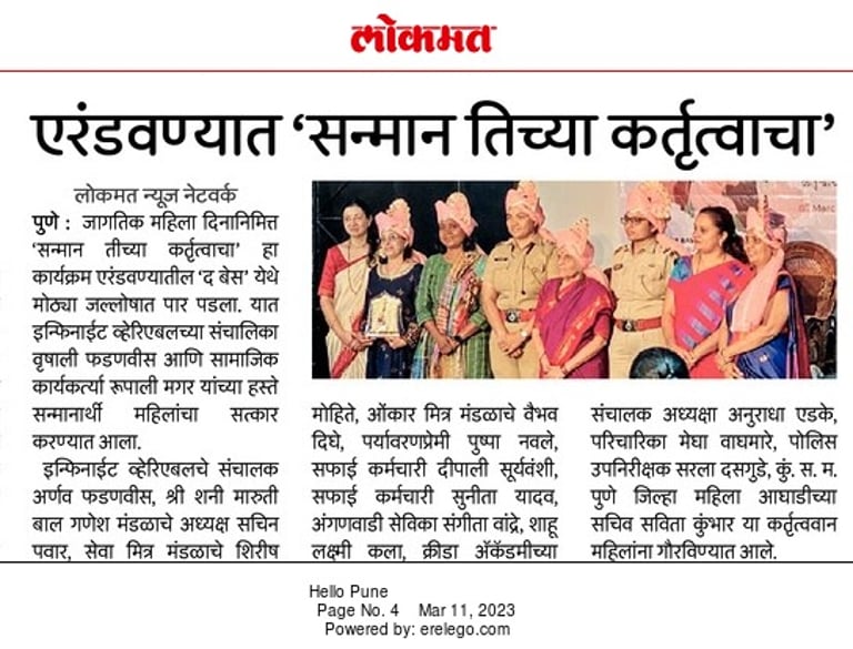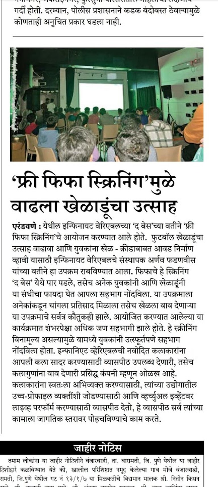 Mr. Arnav Fadnavis, CEO of infinite-VARIABLE, was recognized for his contributions to the entertainment domain with the Lokmat Achievers of Pune Award.